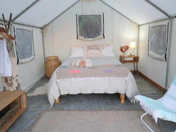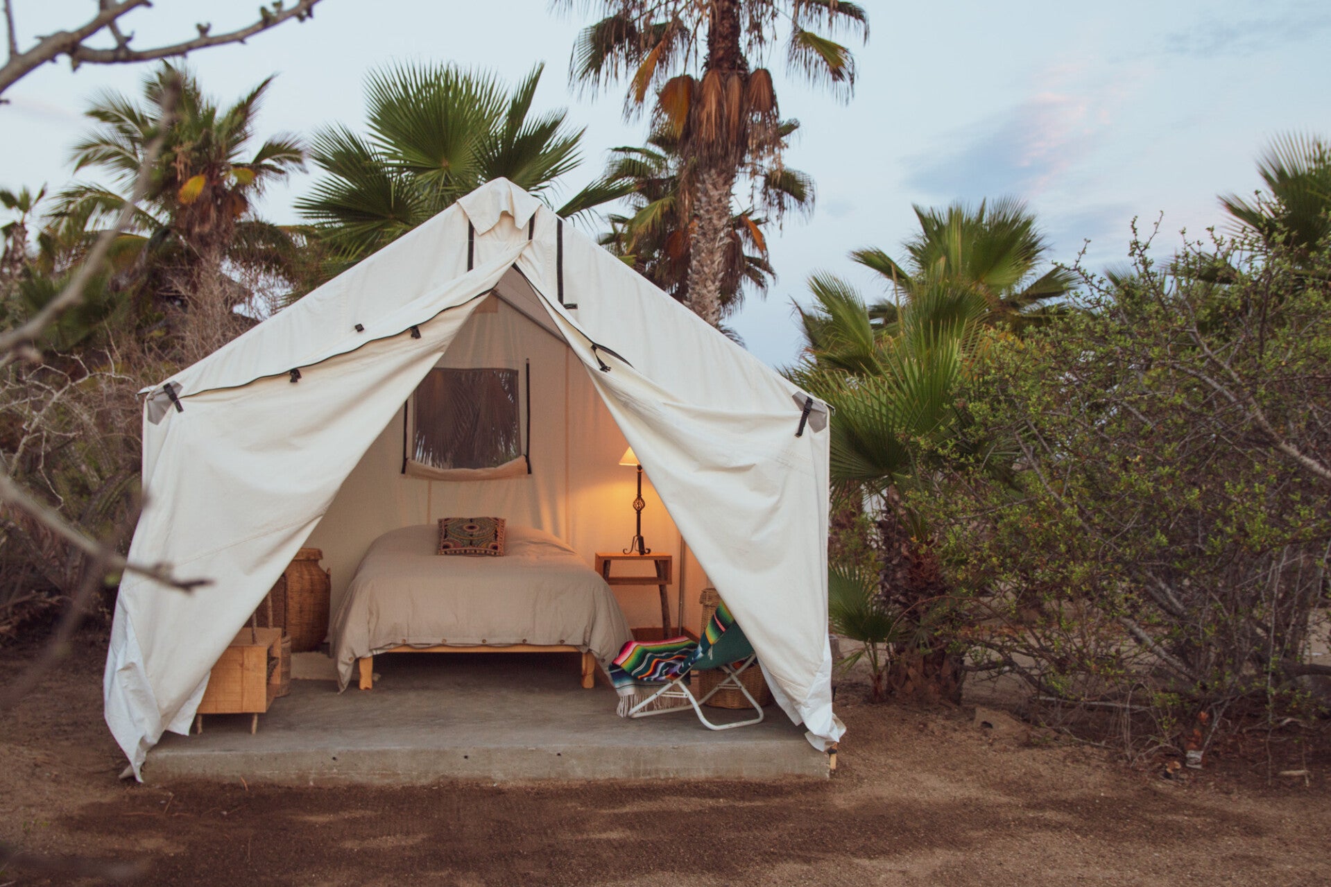 For luxury during your stay while still being connected to nature. With polished concrete floor, comfy full size bed, down comforter, towels and plenty of space to store your clothes, these cabins are your perfect home away from home - nestled into the desert, yet still close to the beach.