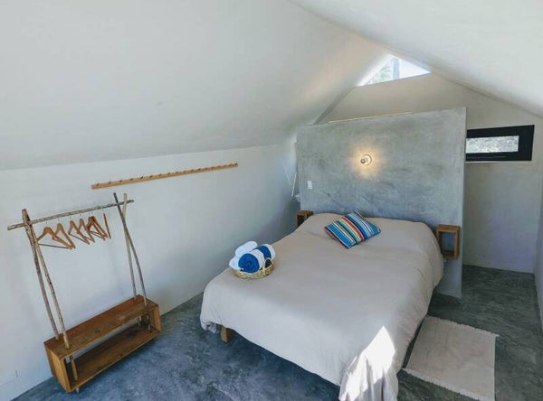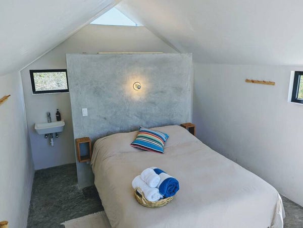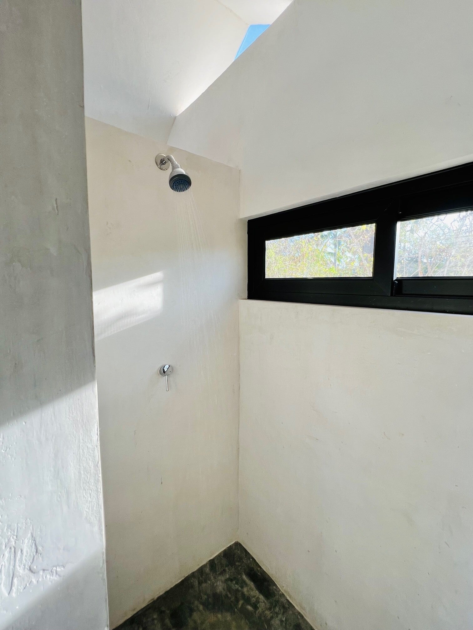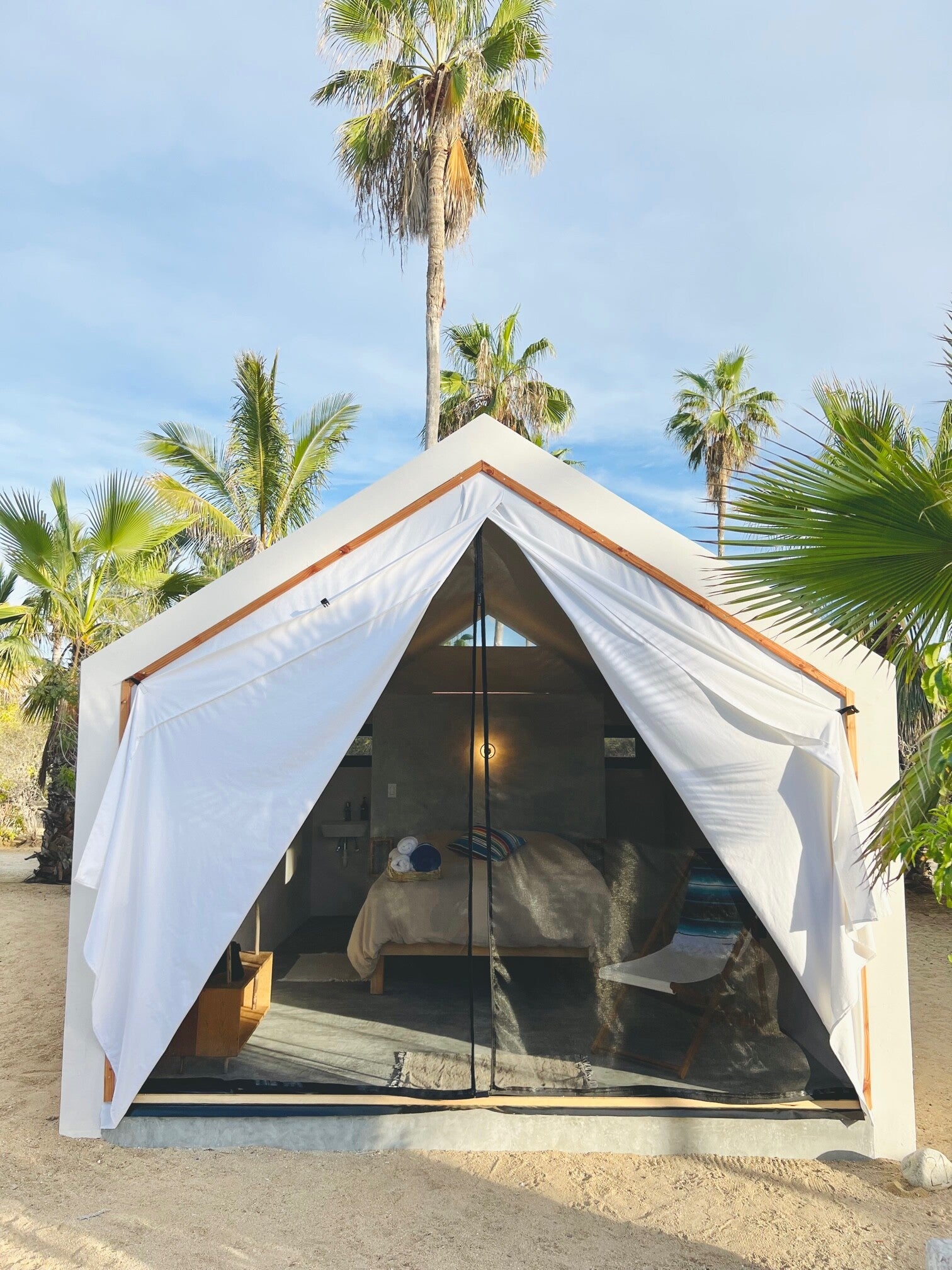 For further comfort, get a cabana with a private bathroom and shower. These are fitted with a queen bed. The bathroom is open concept with a privacy half wall.